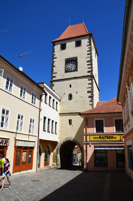 Раньше ворот было больше, но до нашего времени достоялись только эти. За воротами расположена небольшая площадь и Универмаг.