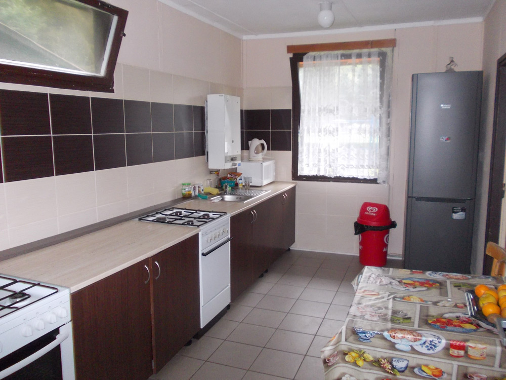 В кемпинге отличная кухня с большой столовой комнатой.  На кухне установлены газовые плиты,