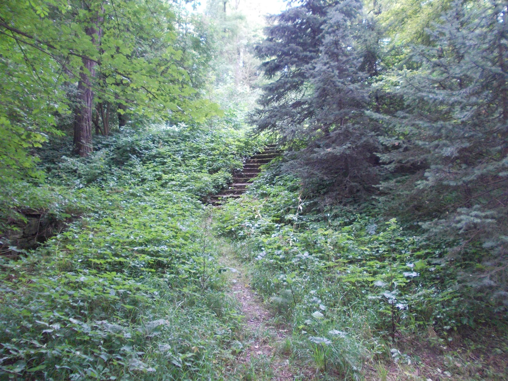 В парке много пешеходных дорожек, многие из которых уже поросли кустарниками,