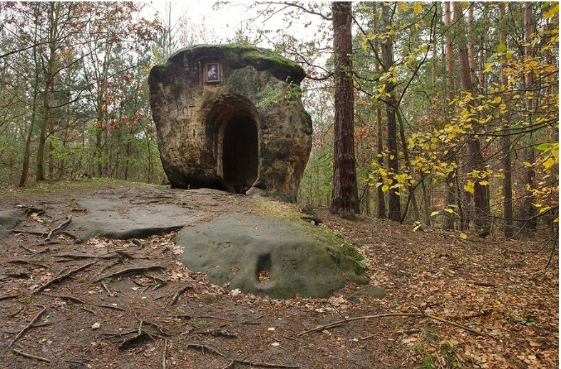 Первые скульптуры из камня Вацлав Левы создаёт в скалах близ города Либехов — Клачелка (Klácelka),