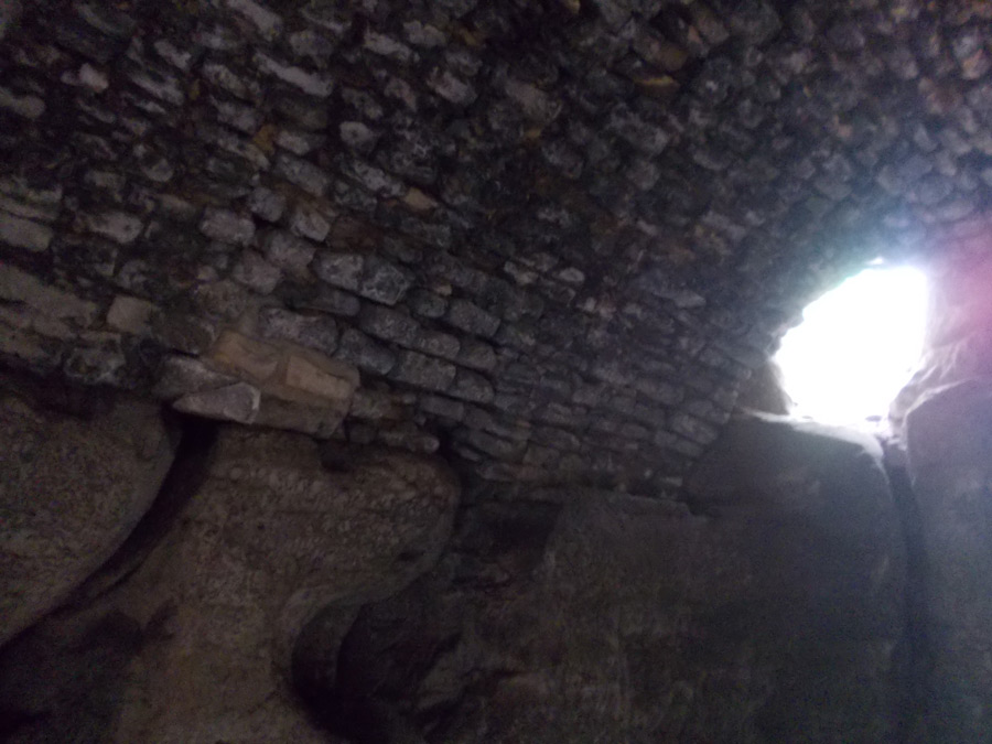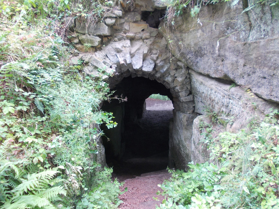 подвалы, а дальше, протиснувшись сквозь заросшее кустарником отверстие, мы вошли в скальный туннель,